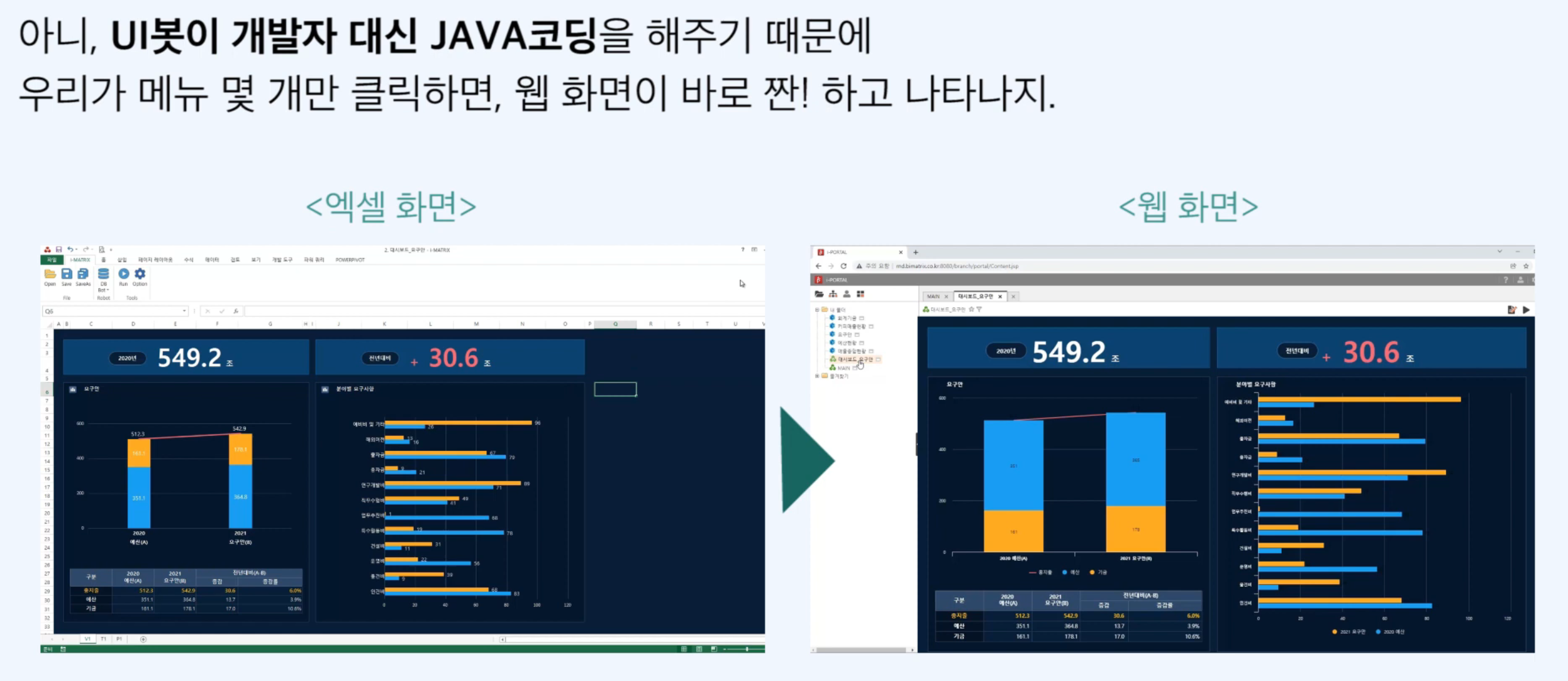 로우코드 통합 UI 개발 솔루션 AUD플랫폼 제공 - BI/OLAP · 대시보드/시각화 · 리포트 · UI/UX · 엑셀 자동화 통합 제공