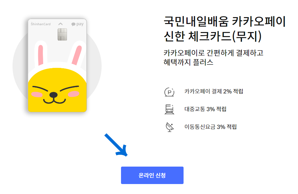 국민내일 배움 카카오페이 신한카드 체크 온라인 신청을 누르시면 좀 더 자세히 확인하실 수 있습니다.