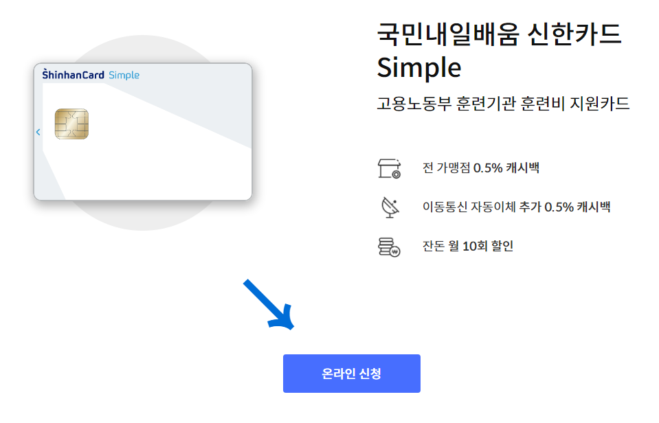 국민내일배움 FANtastic S신한카드 체크 온라인 신청을 누르시면 좀 더 자세히 확인하실 수 있습니다.