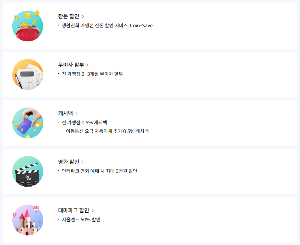 *월간 적립한도 30만 원에서 50만 원 미만 사용 5천 원50만 원에서 ~70만 원 미만 사용 7천 원70만 원에서 ~100만 원 미만 사용 1만 원즉 만원적립하려면 70만 원을 써야 한다는 사실!