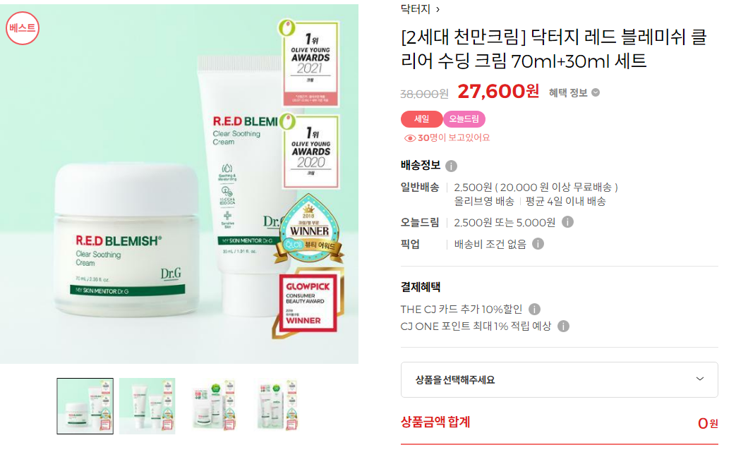 ▶닥터지 레드 블레미쉬 클리어 수딩 크림