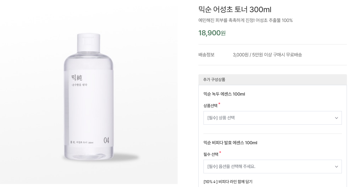 믹순 어성초 토너는 이번에 새로 알게 된 제품인데요 어성초를 최대한의 함량으로 담아서 무색소 무향료로 순수 100%의 추출물을 담고 있다고 합니다.