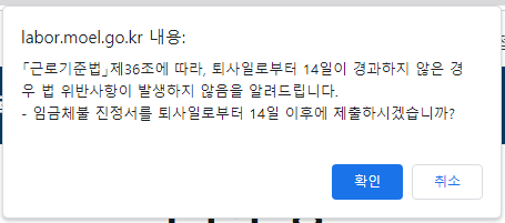 지금은 제가 퇴사한 지 14일이 되지 않아서 14일 이후에 제출해 달라는 팝업이 뜨는데요