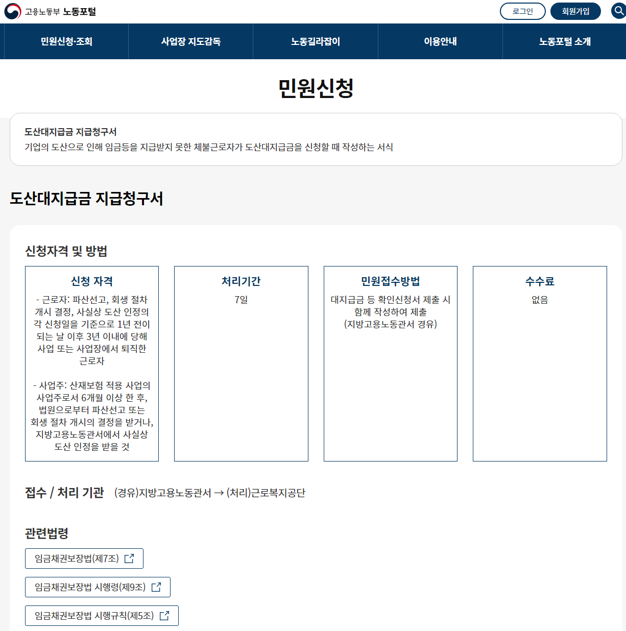 도산대지급금 민원 홈페이지
