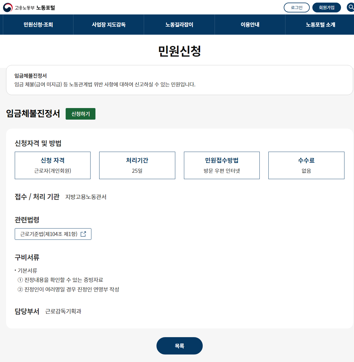 고용노동부 노동포털