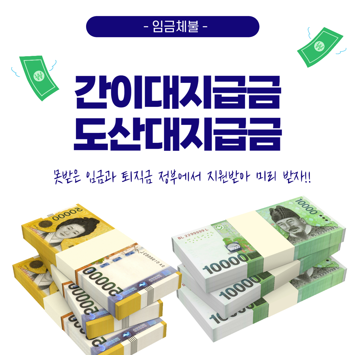 회사에서 임금, 퇴직금 지금이 늦어지나요? 기다리면서 시간이 흘러가기만 하는것이 막막하셨죠, 이제는 간이대지급금으로 대신 받을 수 있습니다. 국가가 근로자를 대신해서 금액을 받아주고 향후에 회사에 구상을 청구하는 제도입니다.